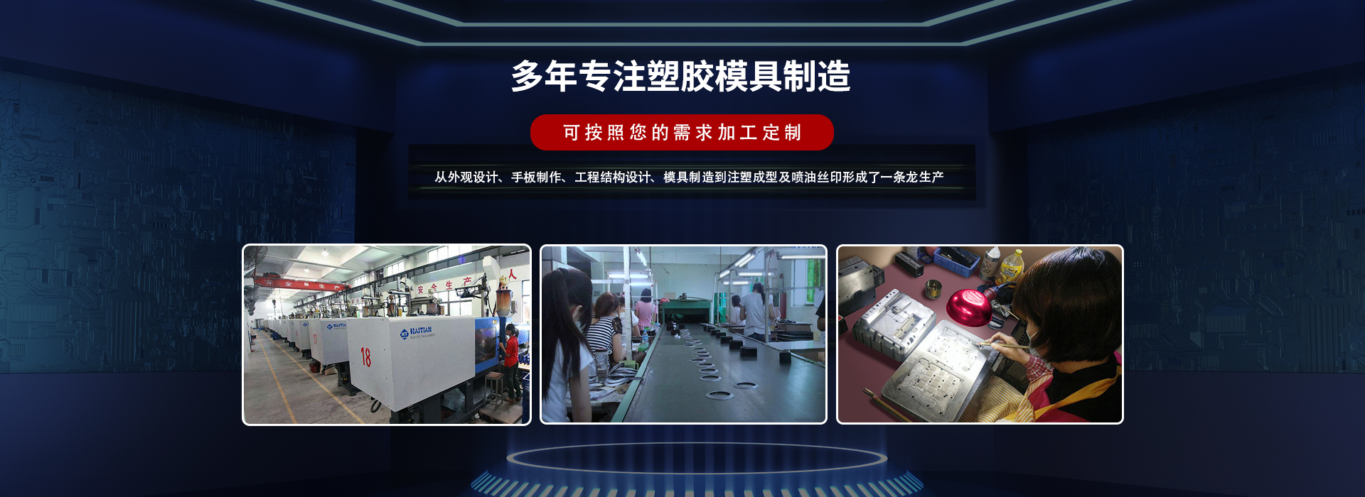 25年從事模具制造到注塑成型及噴油絲印形成了一條龍生產經驗